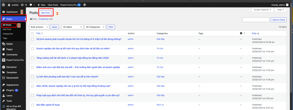 Để thêm được nội dung của website, đầu tiên làm theo 3 bước như ảnh dưới.