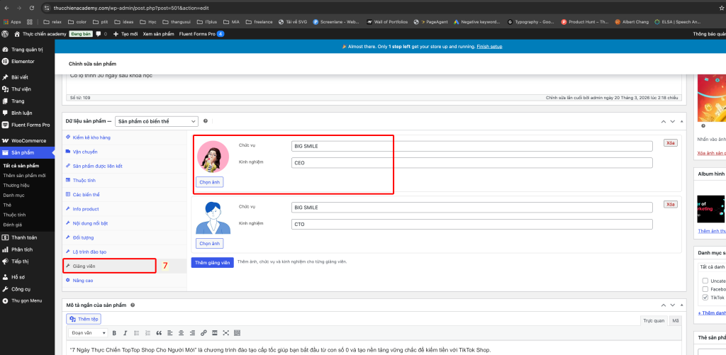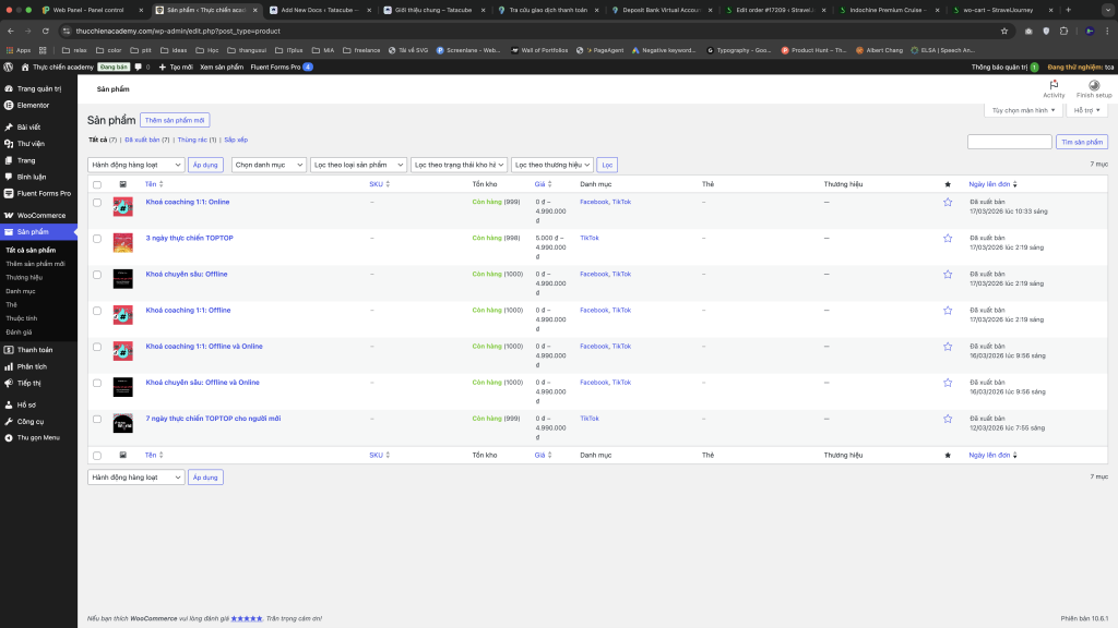 Để sửa khoá học thì click vào menu “Sản phẩm” sẽ được như ảnh.