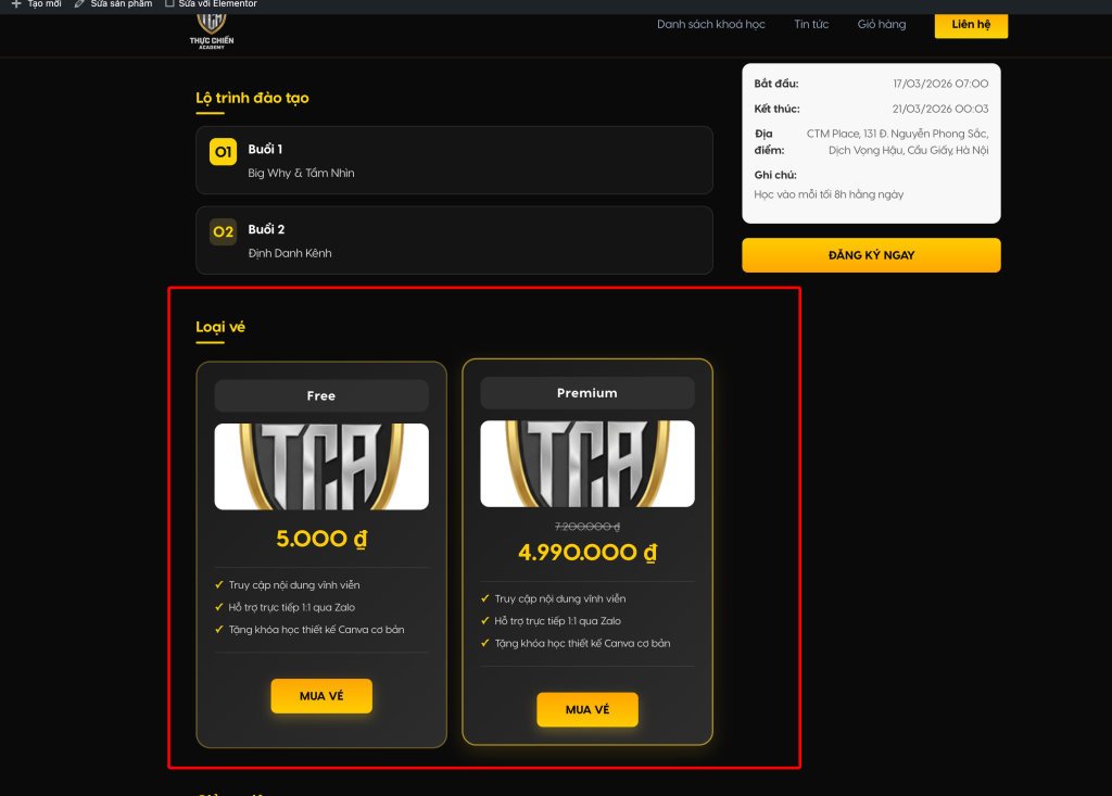 Ở đây bạn nhập tên buổi + nội dung khoá học.
