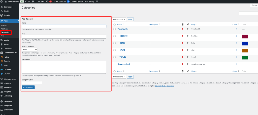 - Name: Tên danh mục (ví dụ: Travel guide)